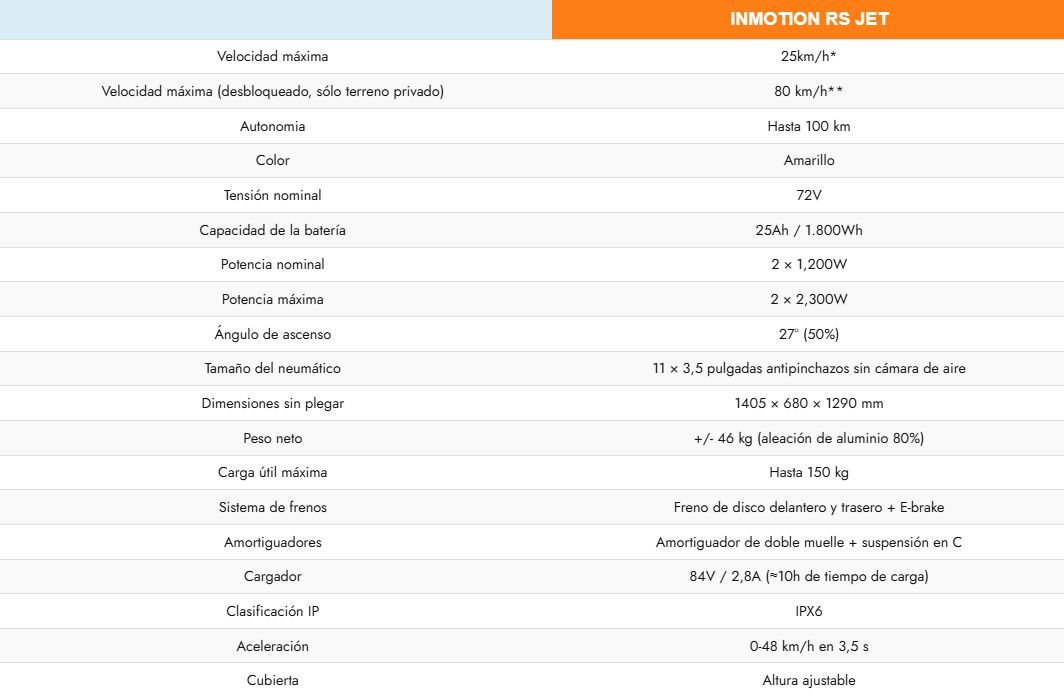 Inmotion RS Jet es un scooter que combina potencia brutal, comodidad total e innovación inteligente con estilo.